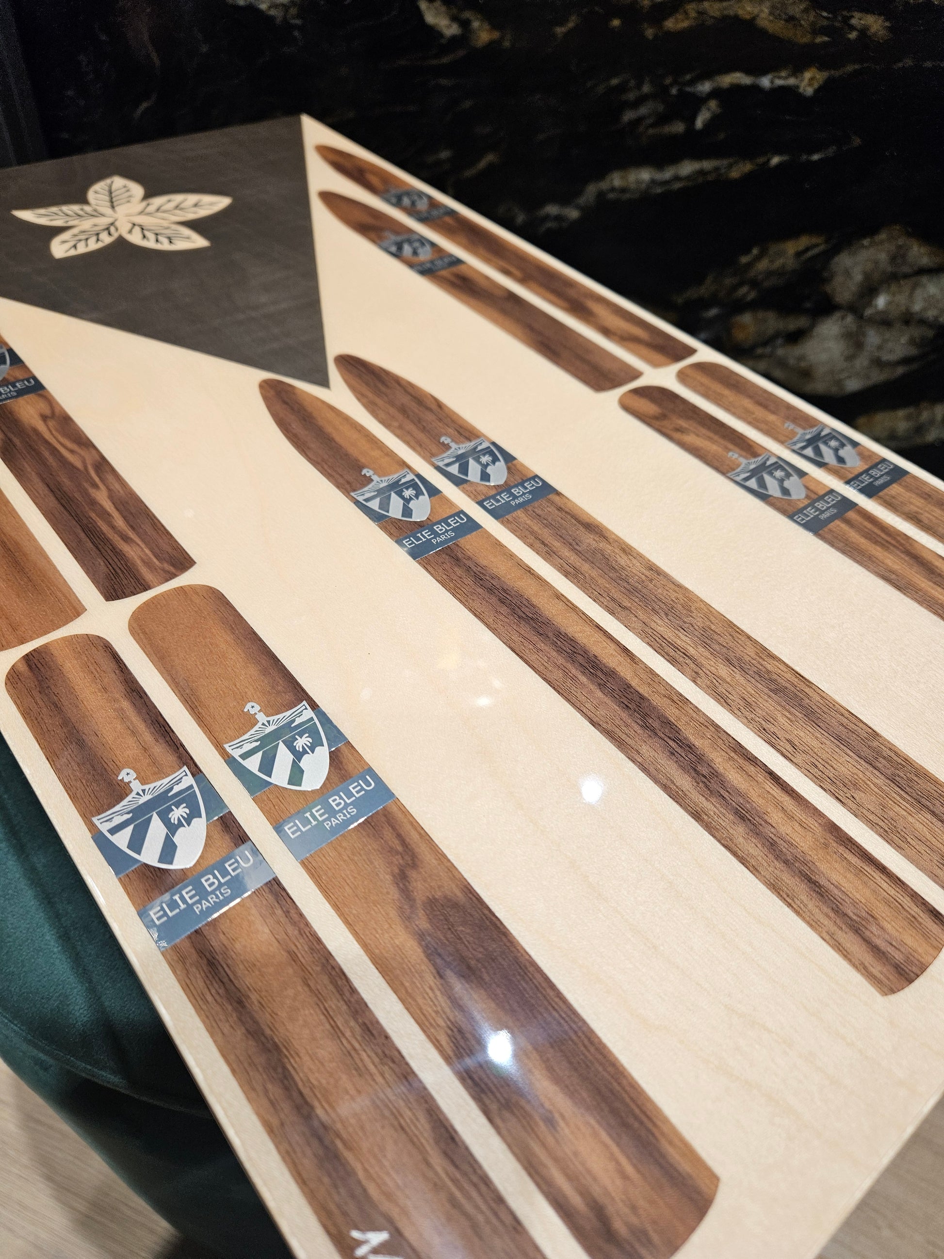 Cuban Flag Cigar Box. The Cuban flag revisited on the theme of the cigar, the box is entirely made of marquetry of different types of wood.